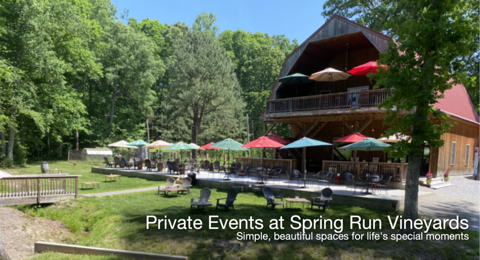 Spring Run Vineyards offers a unique and inviting setting for private gatherings, from birthdays and bridal showers to corporate outings and small celebrations with friends and family.
